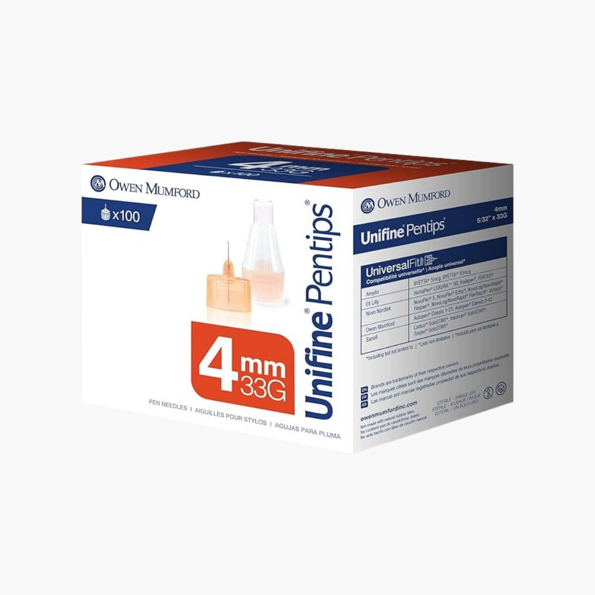 & Free ShippingUnifine Pentips 4 mm × 33 G deliver ultra-fine, near-painless insulin injections with 33-gauge micro-thin needles, advanced anti-coring and silicone lubrication, sterilized and compatible with most insulin pens. Pack of 100.