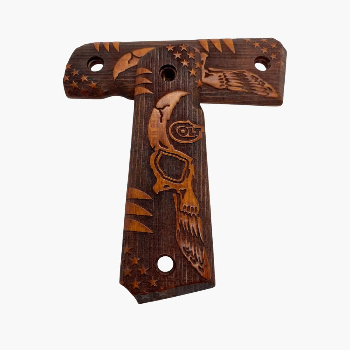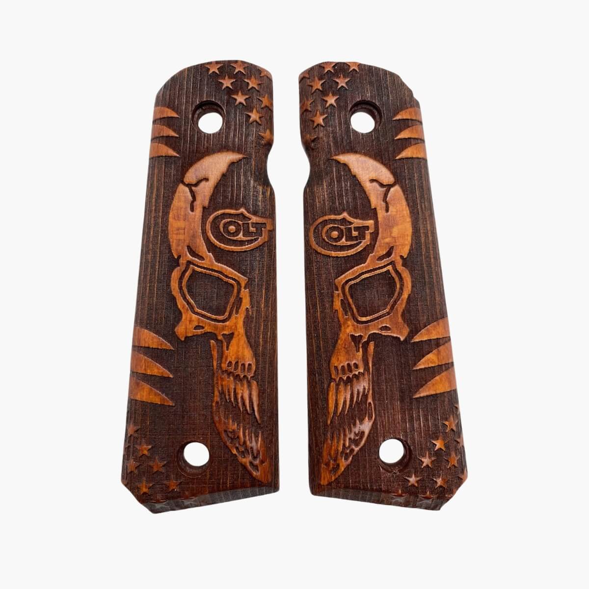 Add bold character and improved handling to your 1911 with the ZIB Full Size Wooden Punisher Grips. Crafted from durable hardwood and laser-engraved with the iconic Punisher skull, these grips are designed to fit most standard full-size 1911 models. Whether you’re upgrading for style or performance, these grips deliver a perfect balance of function and attitude.
